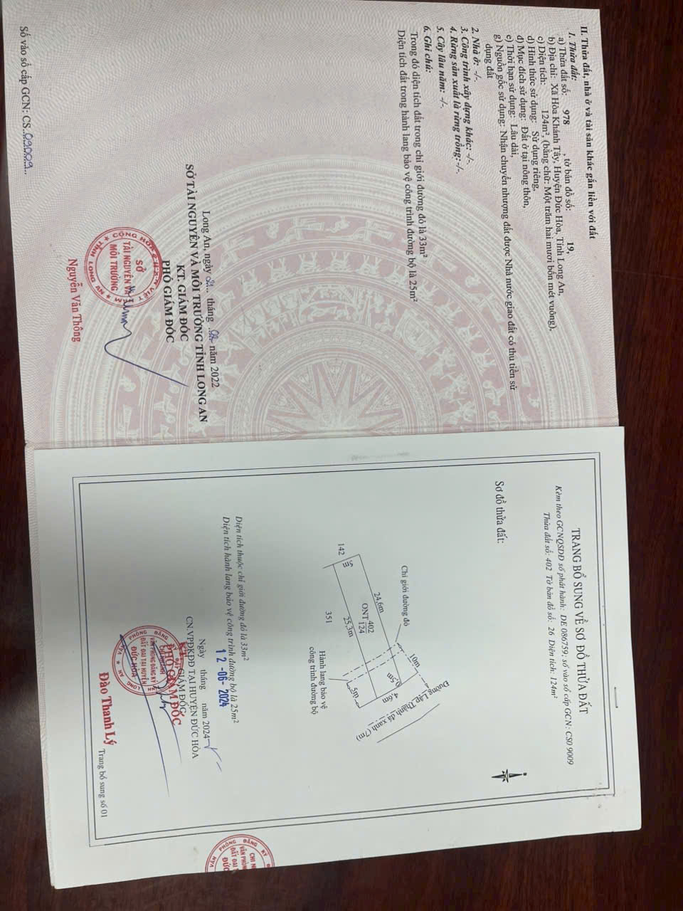 Chủ cần bán lô đất thổ tại ấp Lập Thành , xã Hòa Khánh Tây , huyện Đức Hòa Long An Diện tích 5x25 full thổ , sổ hồng riêng,mặt tiền nhựa đang thi công 7m một vị trí đẹp cho nhà đầu tư nhựa đang khởi công Giá 1 tỷLH 0977388511 zalo