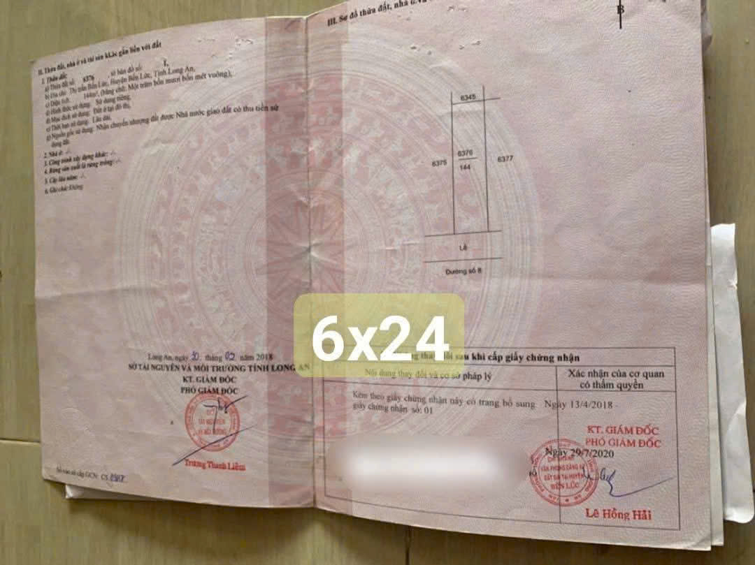 Bán đất mặt tiền đường Long Bình , xã Long Hiệp Bến Lức tdt 800m2 (131,6m2 thổ ) giá 4,5 tỷ