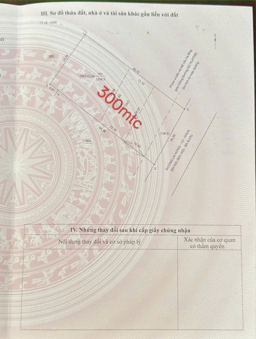 - Có sẵn : 300 m2 thổ cư