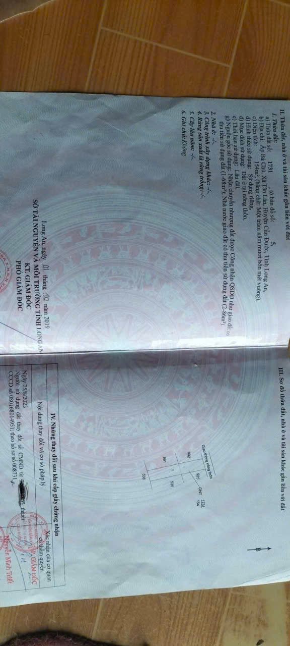 Bán đất thổ cư đường beton xe hơi xã Tân lân , Cần Đước dt 154m2 giá 850 triệu