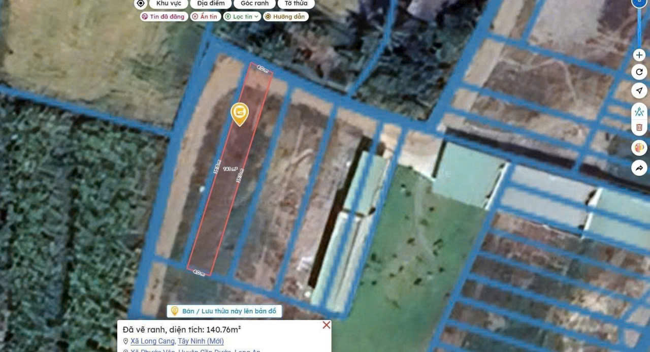 Chủ hạ giá lô đất thổ cư Phước Vân, Cần Đước , Long AnDT 4 x 35 công nhận 140m²Đường xe hơi tới đất.Giá 1,6 tỷ tl hạ còn 1,1 tỷLh 0977388511 zalo