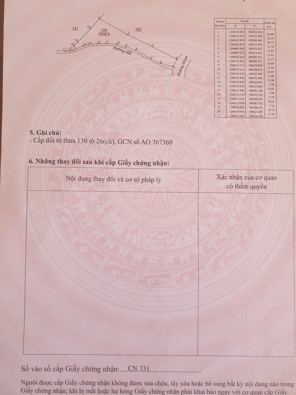 Tổng dt 8.876m2 ( 2 sổ ). Gồm 2 sổ , mỗi sổ 2 mặt tiền , mặt tiền đường nhựa , mặt tiền đường beton hơn 110m.