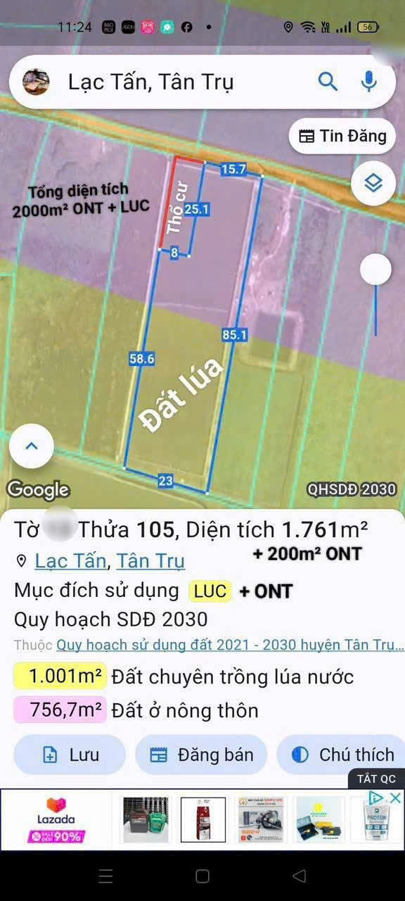 🏠Đất tại ấp 1xã Lạc Tấn huyện tân trụ long an