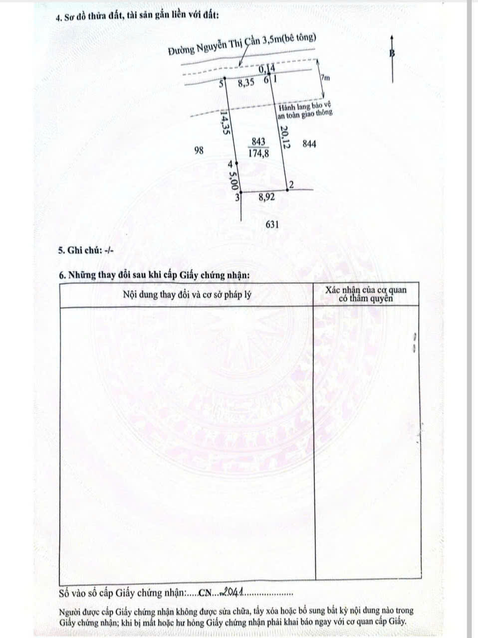 DT: 8.3 x 20 hậu 8.9m - tổng 174m2 ONT SHR - hướng Bắc