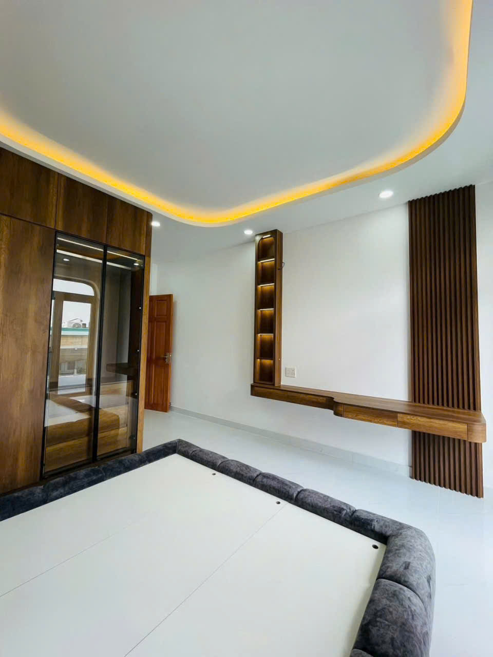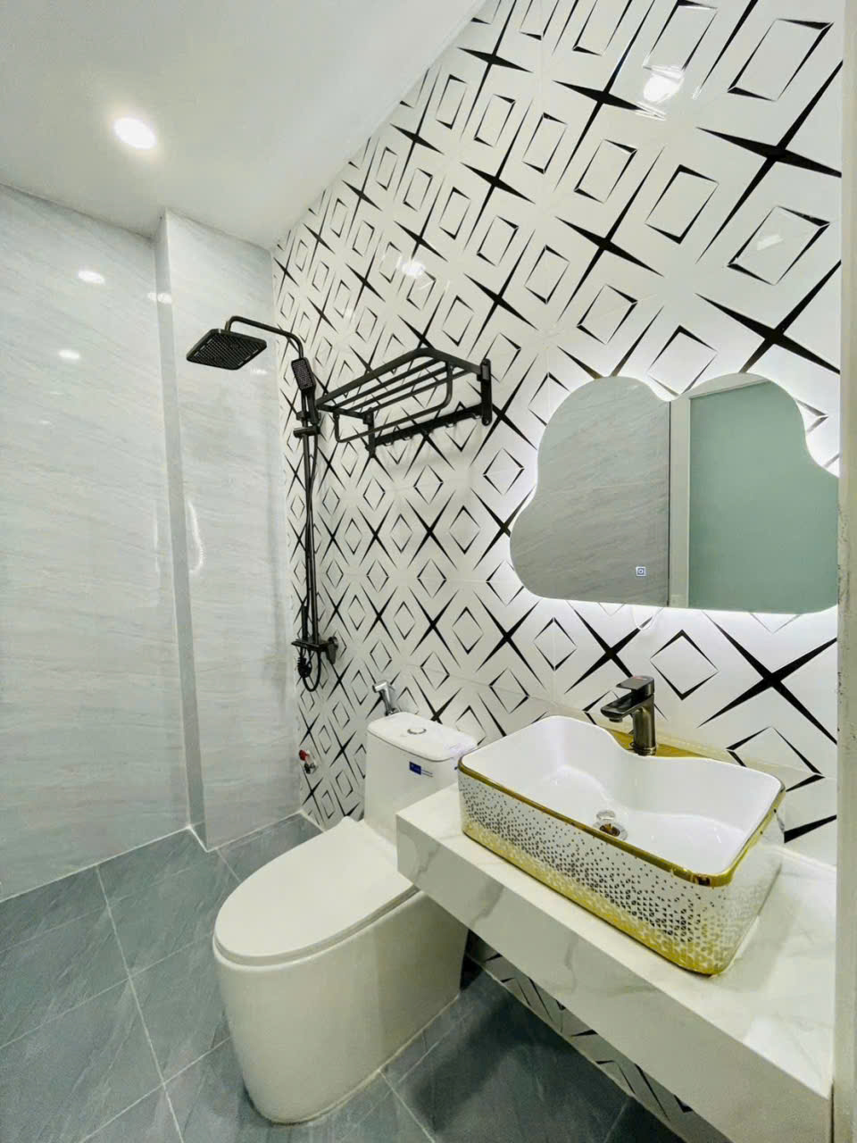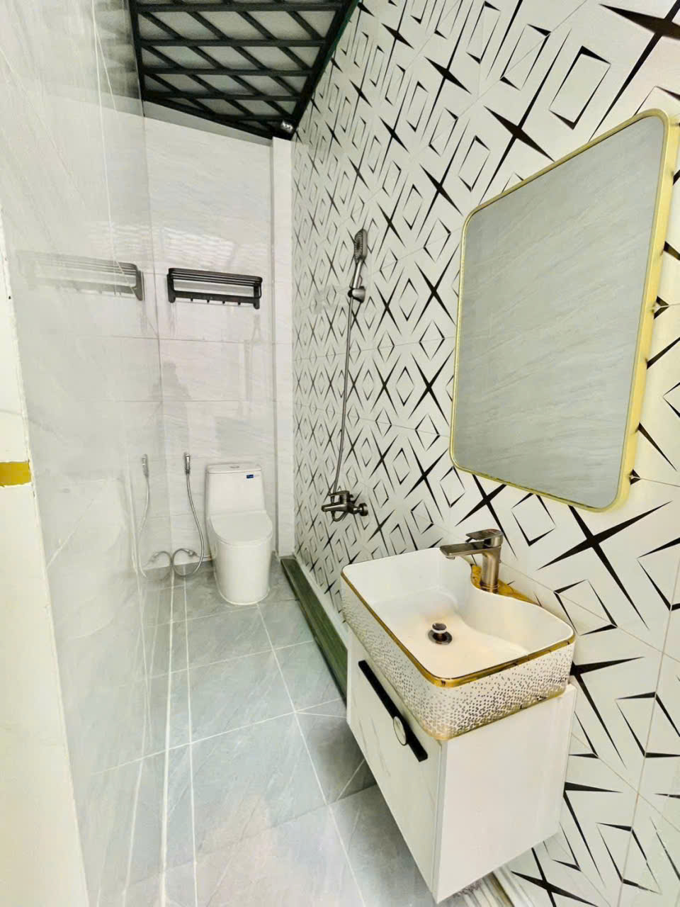 Nhà xây 5 tấm, 1 trệt, 1 lửng, 3 lầu. Gồm 5 PN, 6 WC.